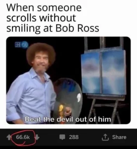 So next time you see Bob Ross calmly painting a “happy little accident” or soothing viewers through a stormy canvas, just remember: somewhere, someone is already turning it into a meme masterpiece.